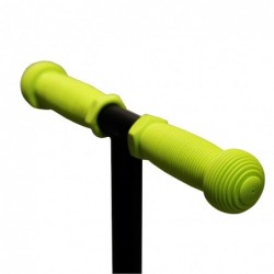 Colored, soft-touch handlebar grips.